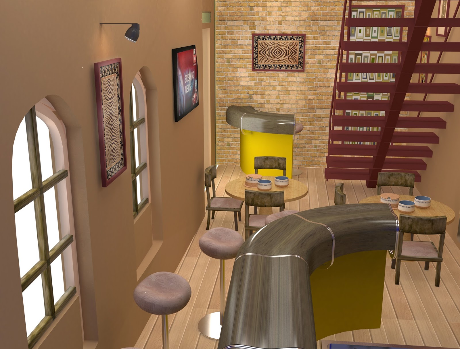 All of the ideas were projected by great images and rendering methons of 3d Studio Max. I tried to introduce a small seating area inside the indoor space, where the kitchen was supposed to be present and a few people can be accommodated. I do not know whether my ideas can be converted to reality by someone, but I enjoyed working on the project. Let me know what you guys think about it.